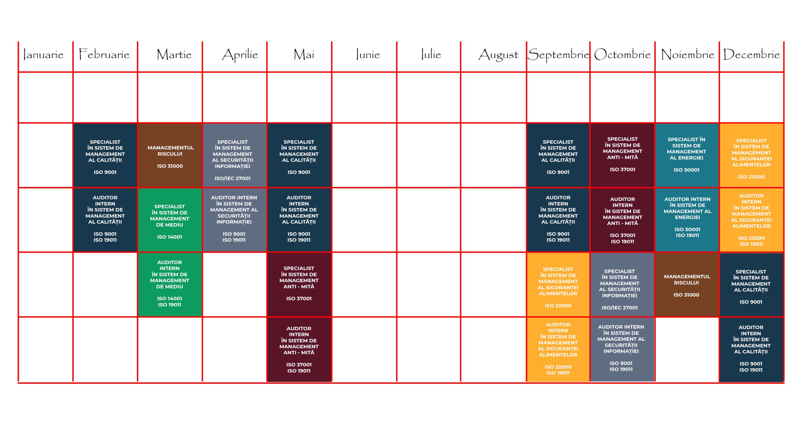 Pentru anul 2026, ISM propune următoarele instruiri: